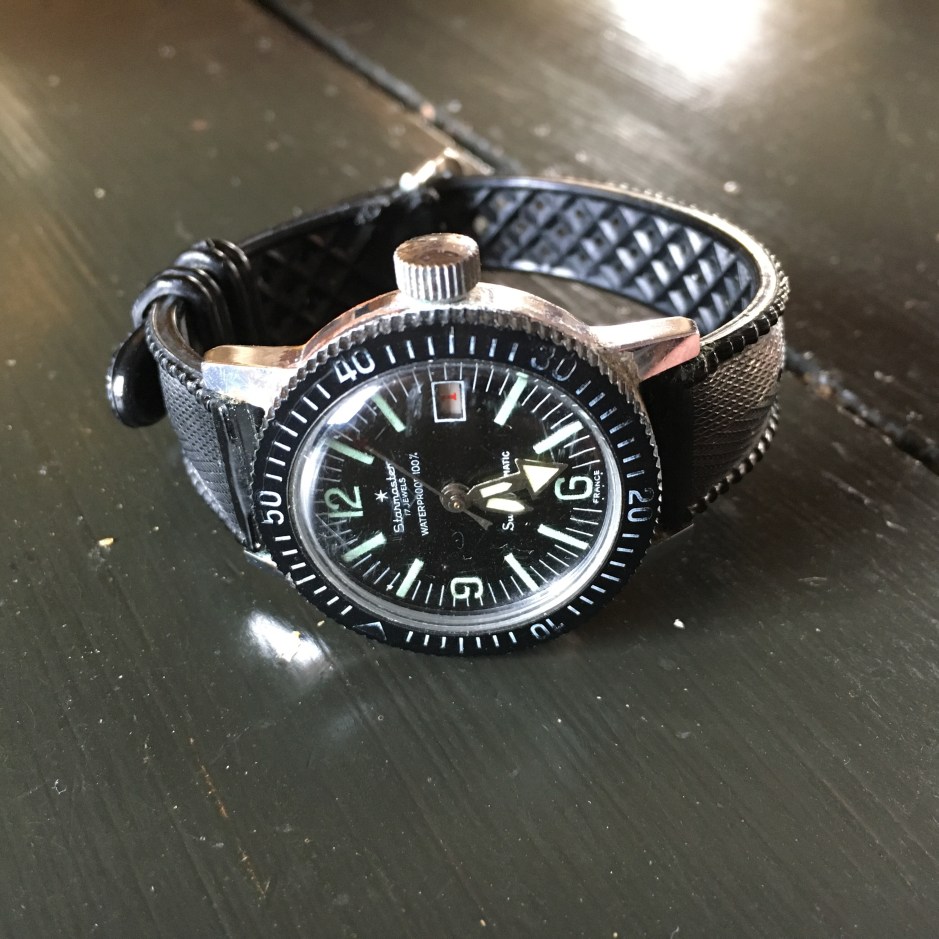 Souvenir… Elle était à mon père, qui me l’avait donnée quand j’étais enfant. Elle a bien connu l’eau salée de la Manche où nous passons nos étés depuis des décennies dans une maison sur la Côte-Fleurie. C’est toujours une joie de la revoir et, à travers elle, de repenser à cette époque. La montre était à l’époque un engin mécanique fascinant et un vrai outil. Elle l’est toujours mais a pris, avec le temps, bien d’autres dimensions… Deux générations l’ont patinée à leur poignet. La troisième sera bientôt prête à poursuivre.