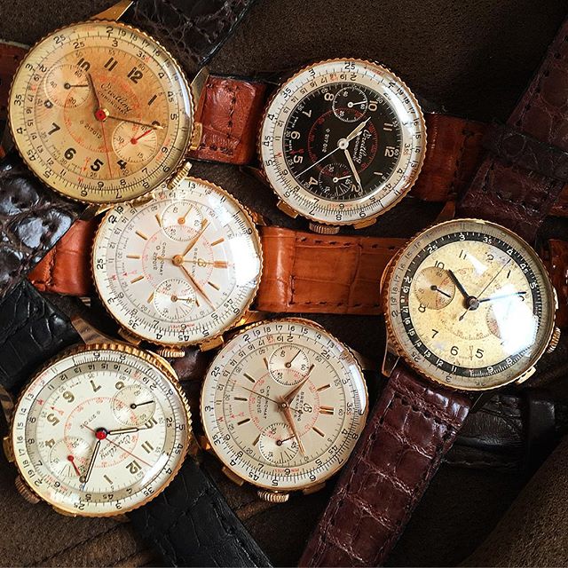 Nous reviendrons un jour plus en détail sur ces merveilleux chronographes et autres montres « pour mathématiciens » car il y a des trésors horlogers à découvrir. En attendant, merci à Watchfred pour les quelques exemplaires rares qu’il a réunis sur cette magnifique photo !