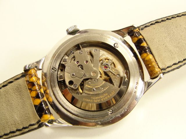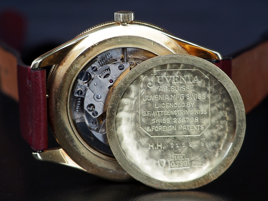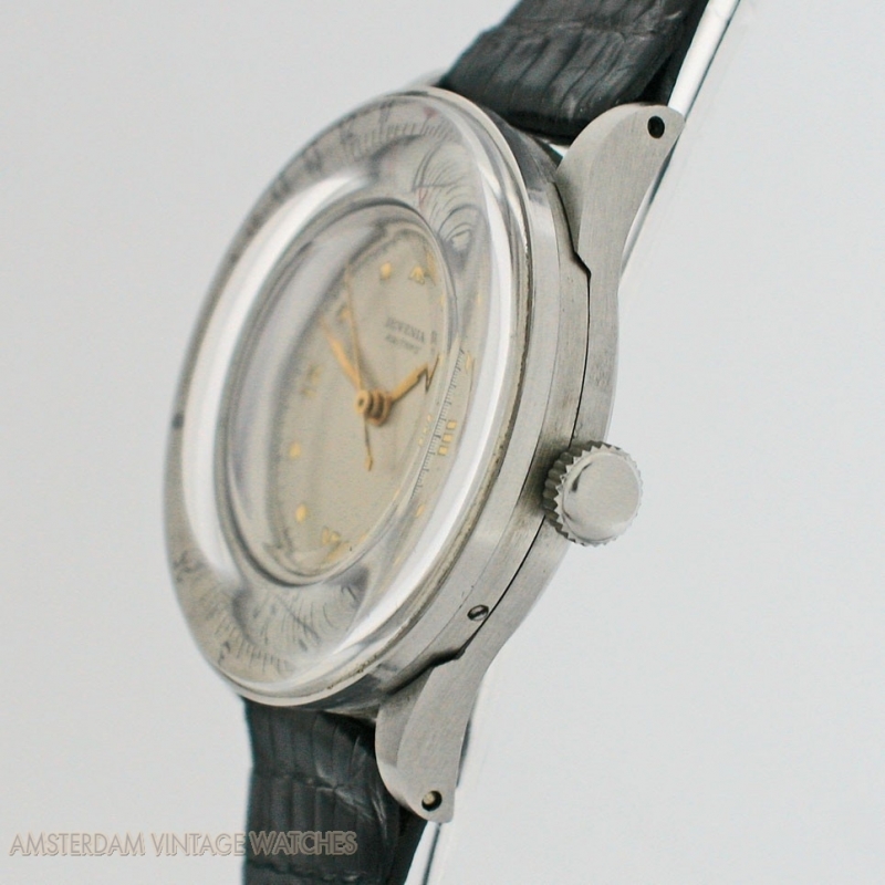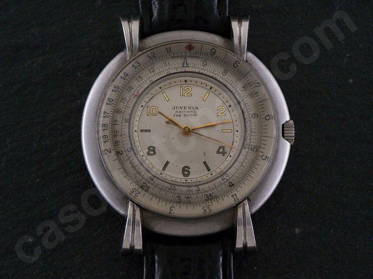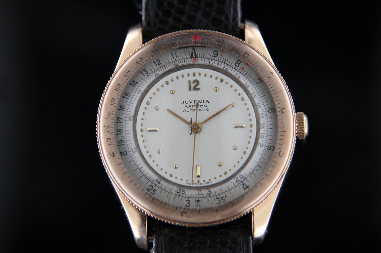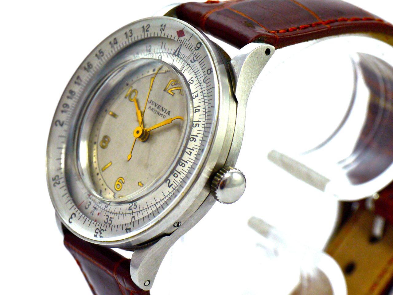 Une autre marque se lance sur ce marché de « niche » quelques années plus tard : Juvenia, maison horlogère fondée au début du siècle et plus portée sur le design que sur la technique pure. Nul doute que le succès de la Chronomat aura donné des idées à la marque pour élargir sa clientèle, principalement située dans la haute-bourgeoisie, au monde des sciences et de l’industrie. Ainsi donc naît l’Arithmo.