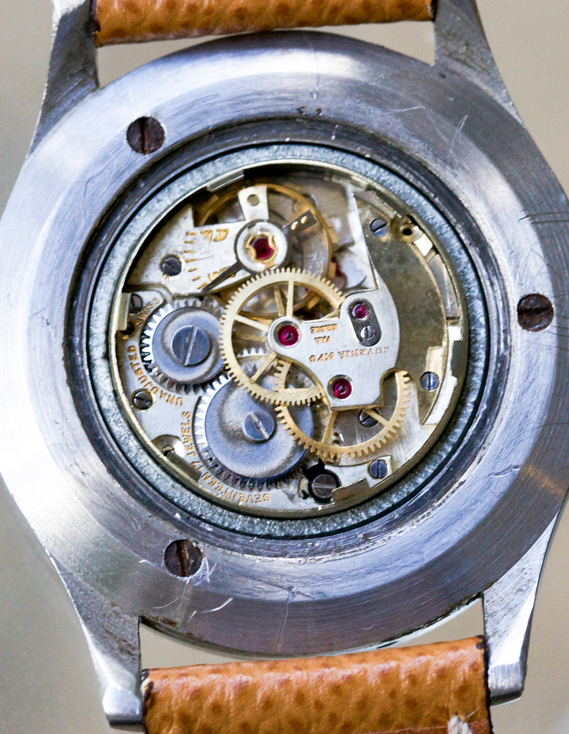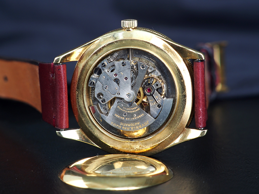 L’Arithmo est proposée, sous réserve d’inventaire, avec un boîtier à fond vissé (brevet Hermetic) ou clipsé. Dans le deuxième cas, la règle à calcul est protégée par un étonnant verre annulaire, baptisé Réfrascope. Animées de mouvements mécaniques « maison », elles bénéficieront dans les années 1950 d’un calibre automatique à ressorts de butée (bumper).
