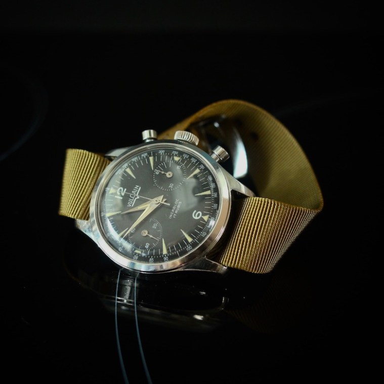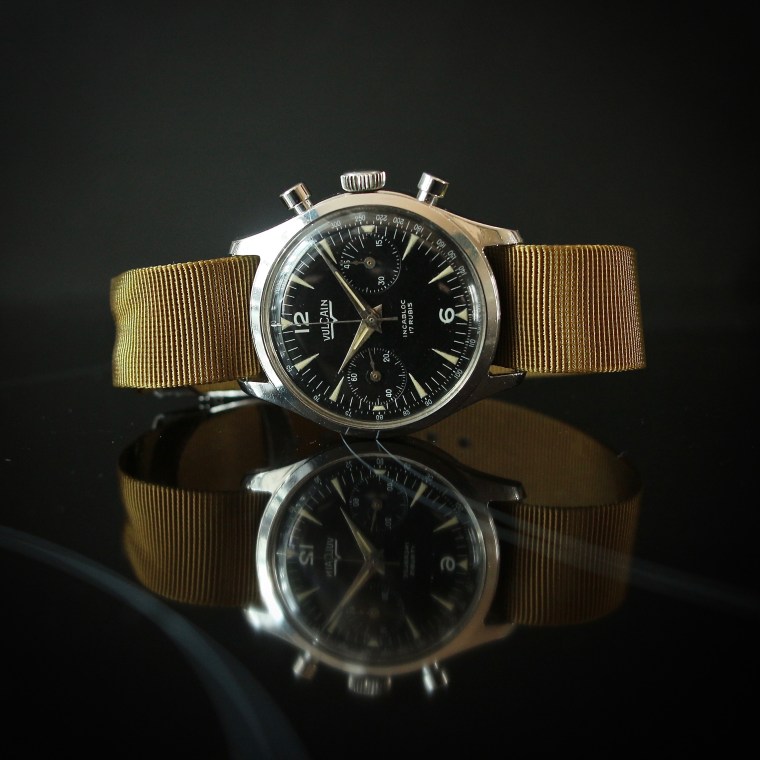 Très rare, cette Vulcain sort aisément du lot des petits chronographes polyvalents des années 1960. L’élégance de son boîtier, le soin porté à sa conception et le charme de son cadran y sont pour beaucoup. Voilà qui invite à découvrir une marque qui, au-delà des classiques Cricket et Nautical, reste encore à l’écart des emballements tout en bénéficiant chez les collectionneurs « qui savent » d’une cote d’affection tout particulière.