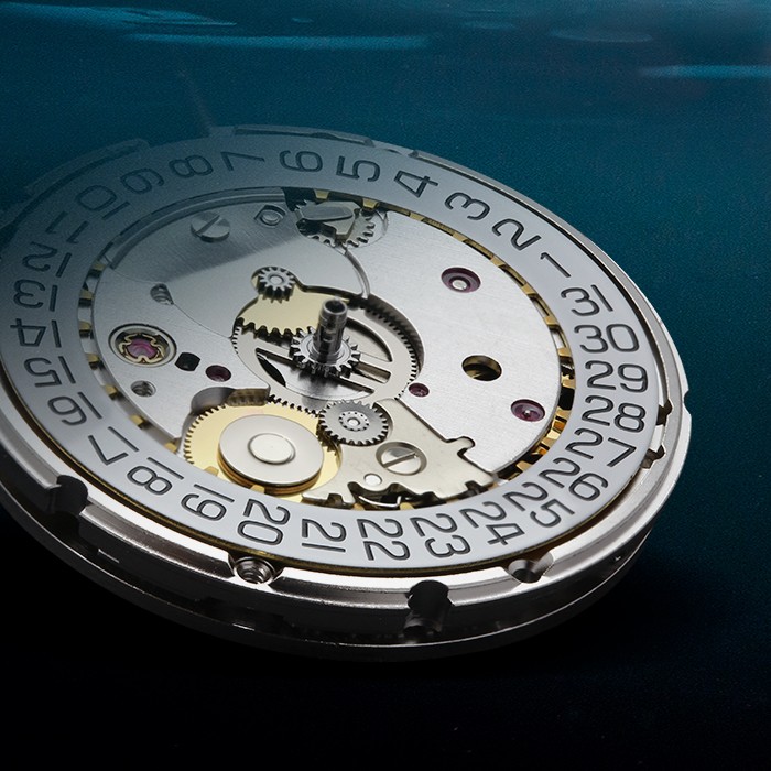 Il va sans dire que je n’ai aucun moyen d’ouvrir mon exemplaire (garanti étanche à 300 mètres) et que je dois piquer une photo officielle pour vous montrer le cœur battant de la Grands-Fonds : un calibre ETA 2824-2 (11,5 lignes, 25 rubis, 28800 A/h, 38 heures de réserve de marche), évolution très répandue et reconnue du calibre 2824 apparu en 1972, et ici en version Élaboré, c’est-à-dire un cran au-dessus de la finition Standard.