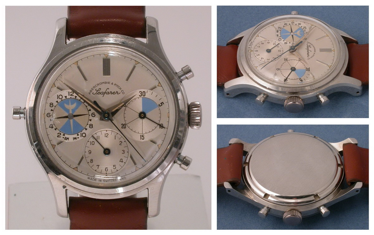 À ce titre, notre chronographe Abercrombie & Fitch réf. 2444 connaît une variante extrêmement prisée des collectionneurs, dotée de la fonction maréographe :