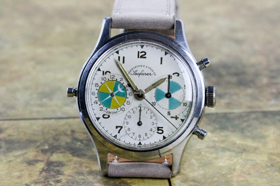À ce titre, notre chronographe Abercrombie & Fitch réf. 2444 connaît une variante extrêmement prisée des collectionneurs, dotée de la fonction maréographe :