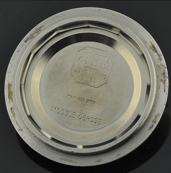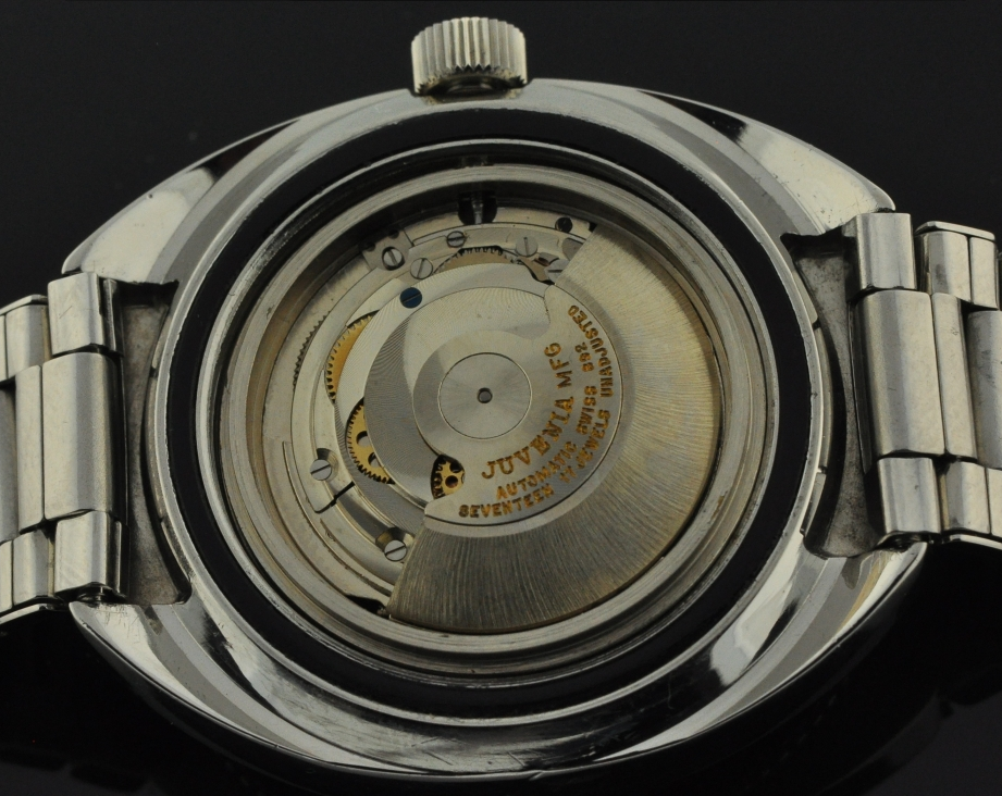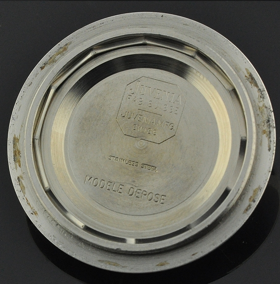 Plus exclusive encore que la Doxa, elle-même bien plus rare que l’Eberhard, la Juvenia n’est à peu près pas documentée. Sa légitimité est attestée par la signature que portent le superbe fond de boîte armorié et le mouvement mais le nombre d’exemplaires connus est si limité qu’il reste aujourd’hui difficile d’en décrire les caractéristiques d’origine de manière tout à fait certaine et indiscutable.