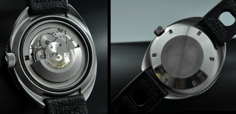 On peut néanmoins considérer raisonnablement, au vu des quelques exemplaires détectés, que la recette est la même que pour Doxa : le boîtier HF reste de mise, de même que le fond de cadran, l’aiguillage et le bracelet, dont la boucle est personnalisée.