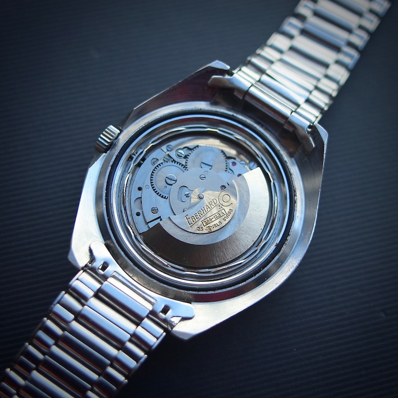 Cette montre, longtemps boudée et assimilée à une sorte de « Seamaster 300 du pauvre », a trouvé le chemin de la gloire. Les raisons : le prestige historique de la marque Eberhard, la forte ressemblance avec la Seamaster 300, un grand diamètre (41 mm hors couronne), la réussite générale du design et, bien sûr, la rareté.