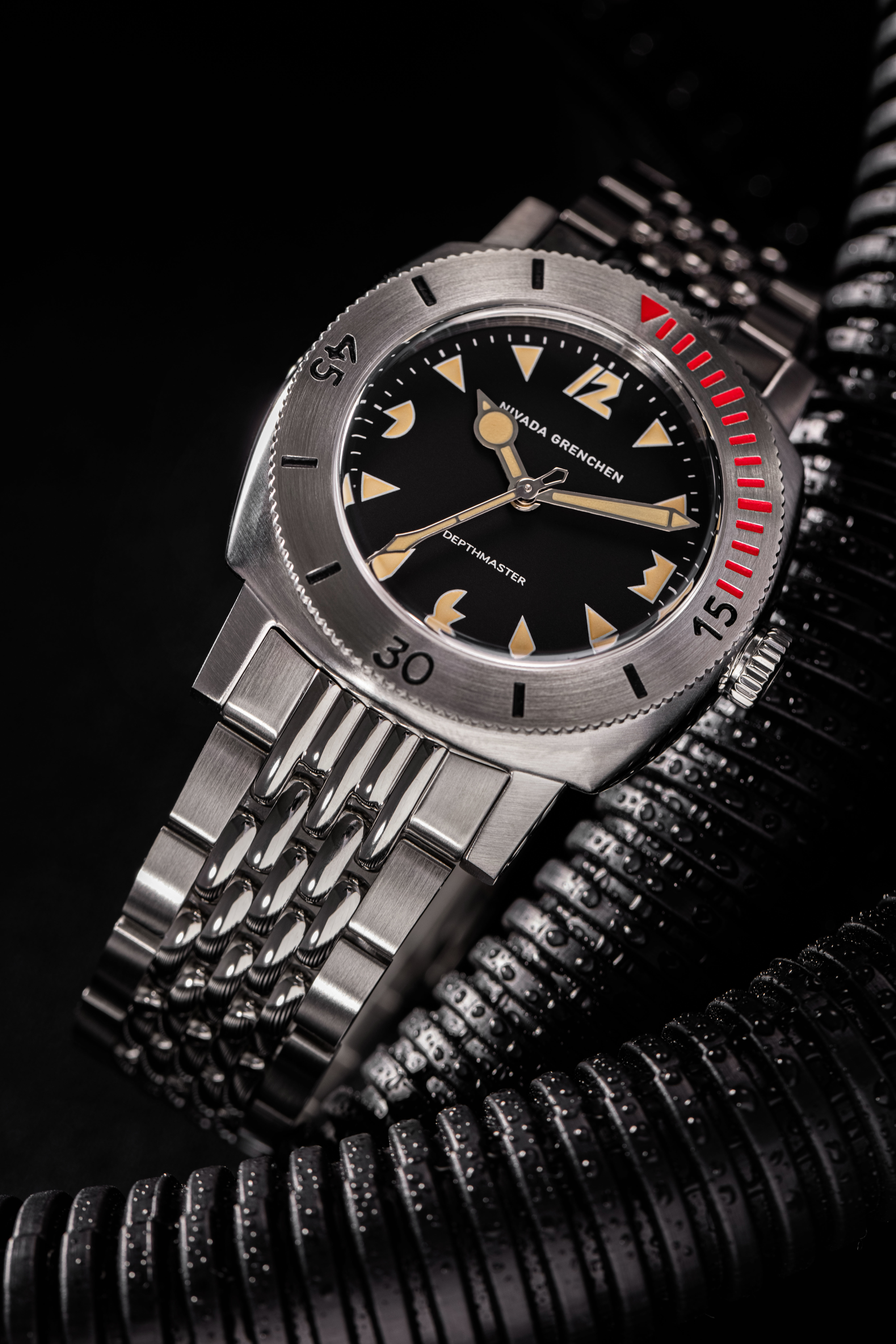 Pour juger directement de cette néo-ancienne plongeuse, il faudra s’armer d’un peu de patience : si la campagne de préfinancement de la production de la Nivada Grenchen Depthmaster sera lancée le 17 février, les premiers exemplaires ne seront pas livrés avant juin 2021. À temps néanmoins pour des vacances que l’on espère déconfinées… Les exemplaires en précommande seront affichés à 850 euros (1000 dollars) sur bracelet cuir ou rubber et 1050 euros (1275 dollars) sur un beau bracelet acier type « grain de riz » (ci-dessous).