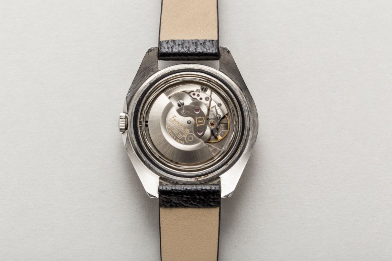 La troisième, qui achève de semer la confusion, est la présence à l’intérieur du calibre 260-13, censé comporter la fonction date… alors que nul affichage n’est possible côté cadran !