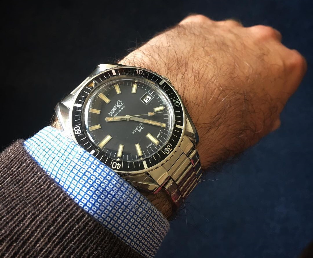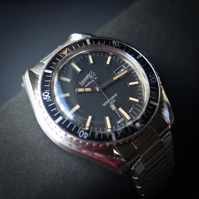 Cette montre, longtemps boudée et assimilée à une sorte de « Seamaster 300 du pauvre », a trouvé le chemin de la gloire. Les raisons : le prestige historique de la marque Eberhard, la forte ressemblance avec la Seamaster 300, un grand diamètre (42,5 mm hors couronne), la réussite générale du design et, bien sûr, la rareté.