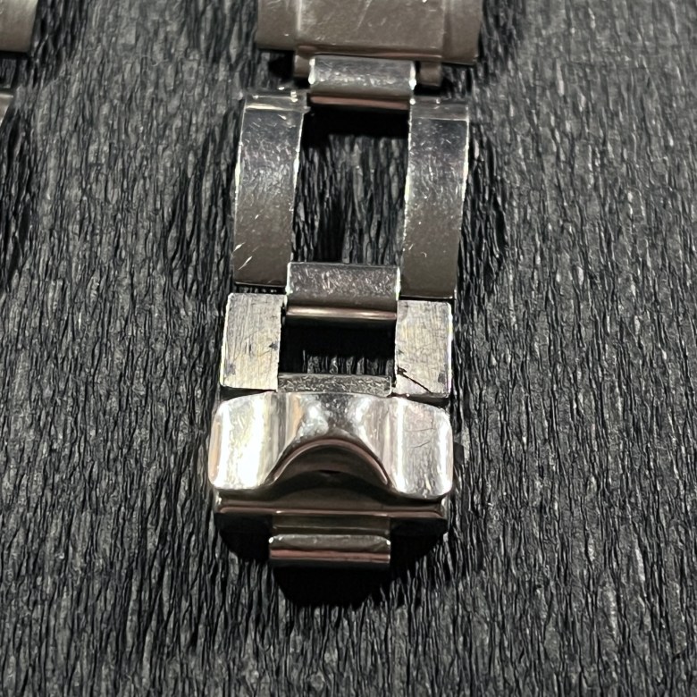 Pour autant, sa qualité perçue constitue, selon moi, le (seul) vrai défaut de cette GF 38. S’il a le mérite d’être léger et facilement réglable (les maillons intermédiaires peuvent être retirés moyennant une petite manipulation guère compliquée, le brossage est un brin approximatif et il émet un cliquetis très cheap qu’on pardonnerait aisément à une montre vendue quelques centaines d’euros mais que je trouve impardonnable pour un modèle présenté à plus de 3000 euros.
