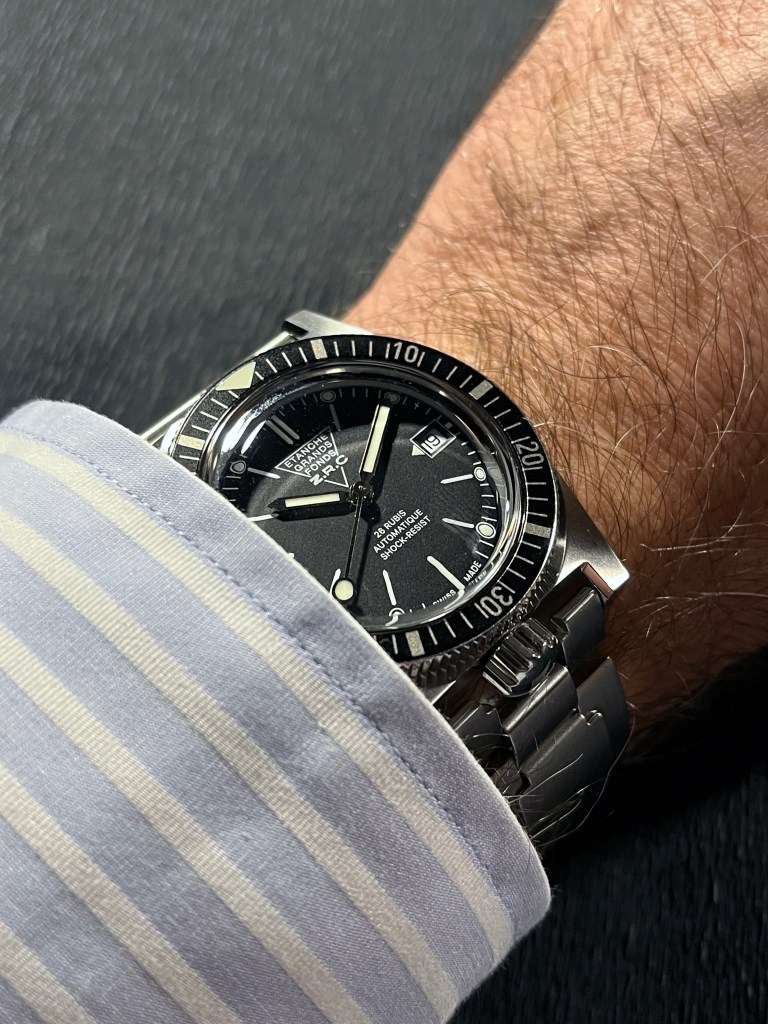 Largement fidèle aux versions d’origine, dotée de toutes les qualités techniques d’une montre de plongée contemporaine, la GF 38 est une option très valable pour quiconque recherche un garde-temps héritier de modèles mythiques et bien plus originale — à budget comparable — qu’une Tudor Black Bay… La froideur relative de son cadran et un bracelet trop fluet pour une montre d’aujourd’hui tempèrent l’appréciation mais ces défauts ne sont pas rédhibitoires : le premier relève d’une pure affaire de goût personnel et on peut espérer, pour ceux que cela rebute, que le second sera corrigé dans la prochaine version. Cette montre le mérite incontestablement. Restera à espérer, pour certains, que ZRC décline ces modèles avec un Luminova plus « chaud » que le pâle verdâtre retenu ici, et pourquoi pas aussi des versions mimant les cadrans tropicalisés, à la manière de la splendide 1964 Spirit ? Ne restera plus alors aux fans de la marque qu’à attendre que ZRC décide de se lance dans une réédition ou une réinterprétation de la Série 1…