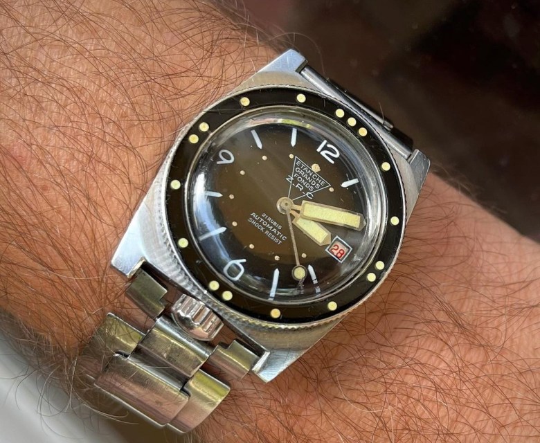 Enfin, si l’immense majorité des Grands-Fonds Série 2 affiche 21 rubis, des versions affichant 17 ou 23 rubis sont également attestées. Face à un cadran 23 RUBIS AUTOMATIC INCABLOC, on est à peu près certain de tomber sur un mouvement Felsa 4000. Pour les autres, comme souvent, il devait s’agir d’adaptations à certains marchés locaux où les droits de douane pouvaient s’avérer très dissuasifs selon l’empierrement des mouvements.