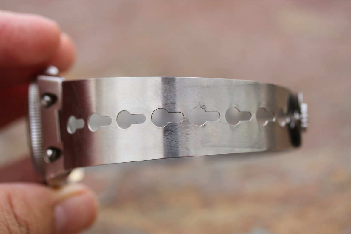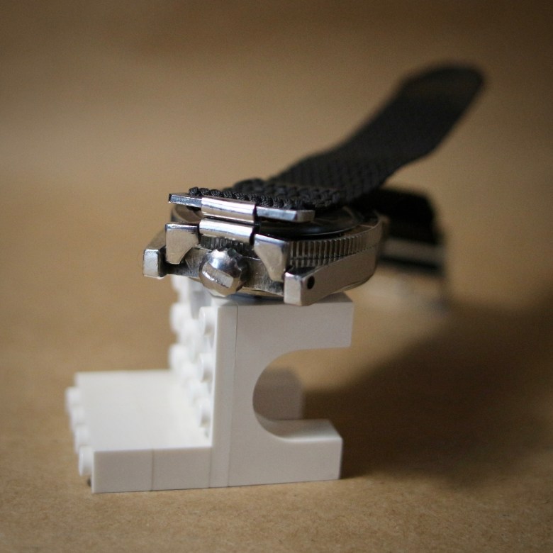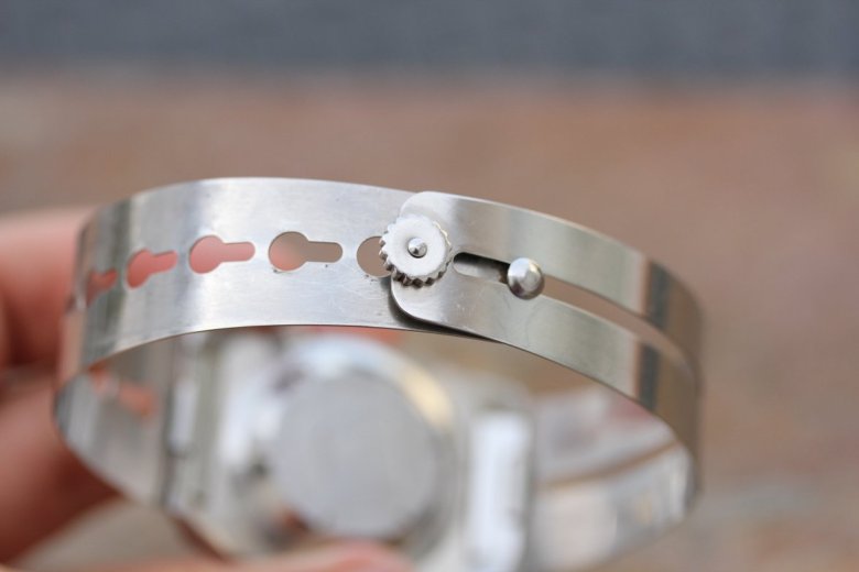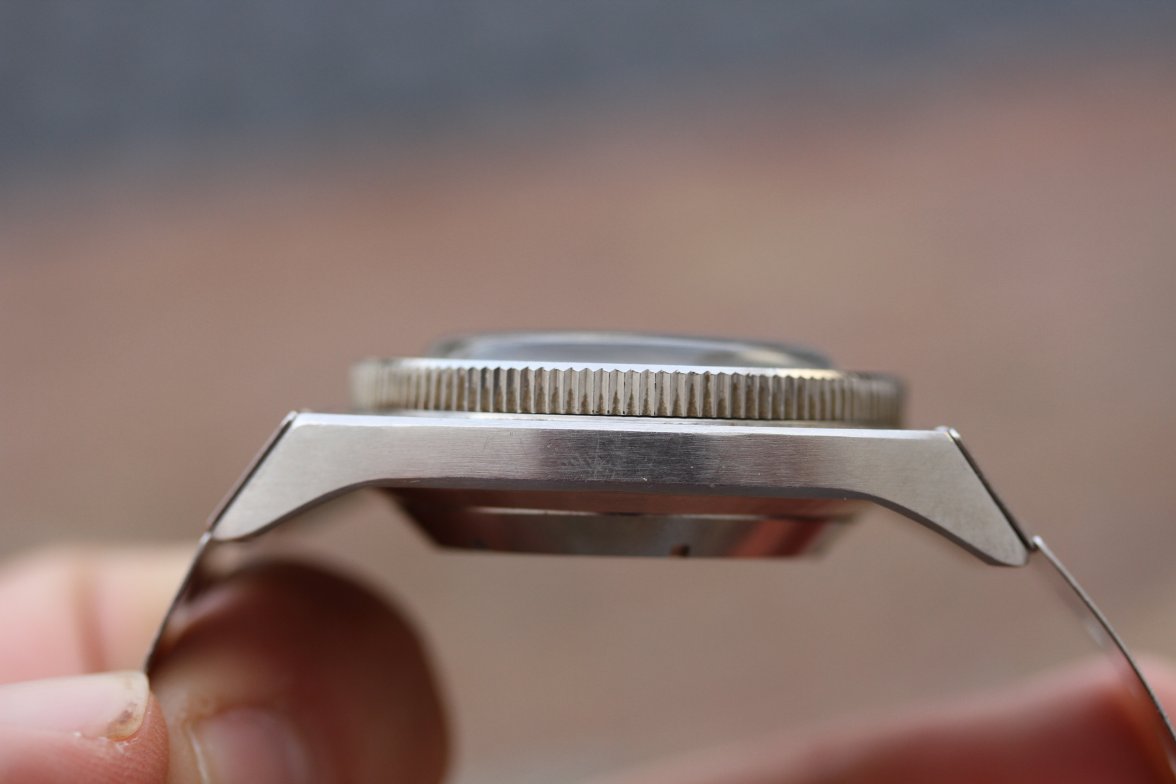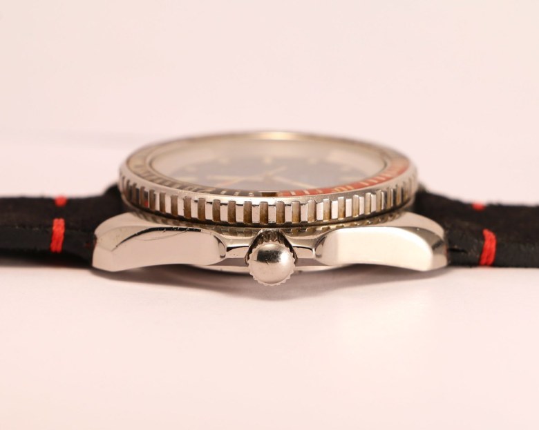 La couronne, toujours vissée en sens contra-horaire, est désormais fendue en son centre. Cette encoche a été ajoutée à la demande des plongeurs de la Marine nationale pour permettre de serrer et desserrer plus facilement la couronne à l’aide d’un… tournevis. Rustique mais efficace.