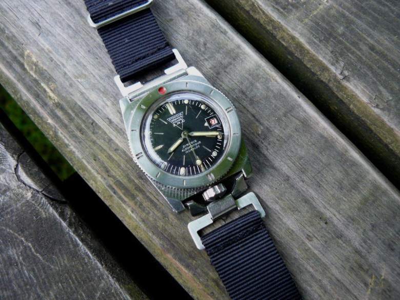 Claude Tauveron en a récemment livré l’explication : comme souvent sur les montres de plongée — du moins celles qui plongent vraiment ! — la rotation de la lunette des ZRC avait tendance à se bloquer à mesure que cristallisait le sel de mer resté prisonnier. Les plongeurs qui en eurent l’occasion s’en émurent auprès de l’horloger toulonnais de la Marine, le fameux Yves Pastre. Ce dernier songea alors à percer ce petit trou à travers la lunette des exemplaires passant entre ses mains afin d’assurer la circulation de l’eau et l’évacuation du sel à l’occasion du rinçage de la montre. Ce dispositif aussi simple qu’ingénieux sera, quelques décennies plus tard, breveté par Georges Brunet et promu aujourd’hui sous l’appellation plus pompeuse d’Easy Clean System (ECS).