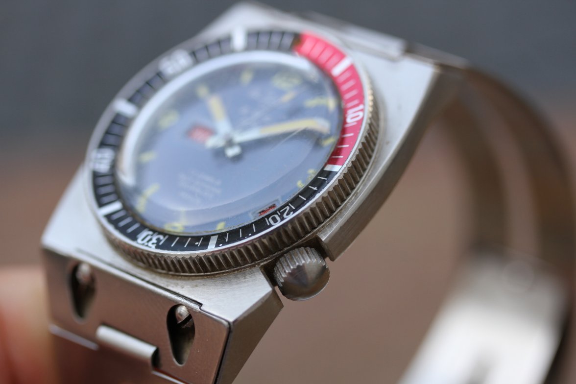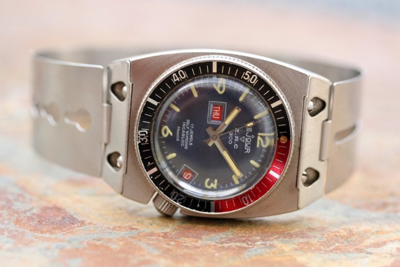 Design outrancier, mouvement datographe mais qualités techniques en régression… l’engin paraît plus taillé pour la frime que pour la performance et si le modèle est extrêmement rare, il ne passionne pas autant les collectionneurs, si ce n’est pour le stock de lunettes, qui a dépanné plus d’un propriétaire de Grands-Fonds !