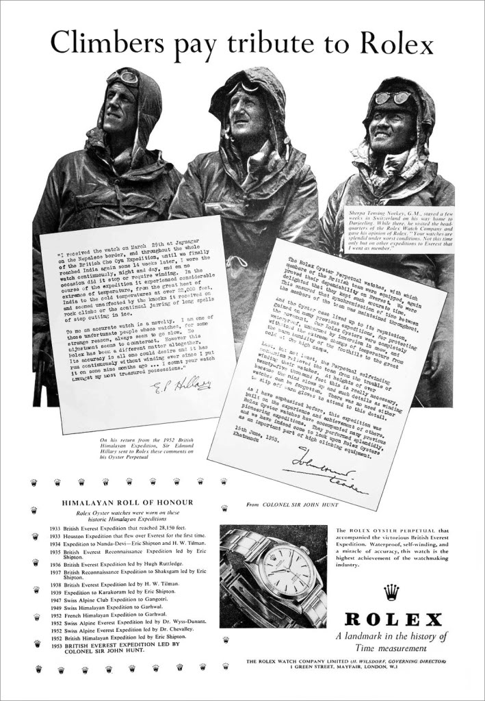 En 1953, Edmund Hillary et Tensing Norgay parviennent, les premiers, au sommet de l’Everest, une Rolex Explorer au poignet. Un an plus tard, c’est une Vulcain qui participe à l’ascension du K2. En 1956, Enicar participe à la victoire sur le Lhotse. Quant à l’Année géophysique internationale, elle permet à d’autres marques de tirer parti des événements : hormis Nivada et Zénith, déjà cités, on peut aussi évoquer Jaeger-LeCoultre. Son magnifique chronomètre Geophysic participe, à bord du sous-marin nucléaire USS Nautilus, à une mission sous le pôle Nord en 1958.