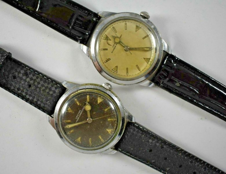 Notre exploration de la Toile a également fait apparaître deux exemplaires apparentés : une Croton Nivada Grenchen Sea Diver logeant le cadran et l’aiguillage de la Super-Antarctic dans une carrure chromée (avec en prime une version à cadran blanc) et une Super-Antarctic au cadran tropicalisé qui, pour sa part, a l’air d’un remboîtage.