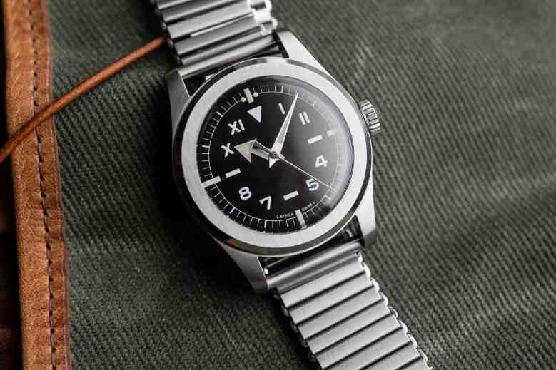 La Fleux, sans doute là aussi pour des raisons de coût mais également par considération esthétique, se démarque en revanche par l’adoption d’un verre hésalite plutôt que d’un saphir. Ce dernier, on le sait, résiste mieux aux rayures mais pèse lourd, n’offre pas les sensations vintage qu’on attend d’une montre nostalgique et s’avère impossible à réparer quand, par malheur, il prend un coup. Même si la déformation du bord du cadran due à la courbure du verre s’avère, de mon point de vue, visuellement un brin gênante, c’est plus de l’ordre du détail pour maniaque… Bon choix, donc.